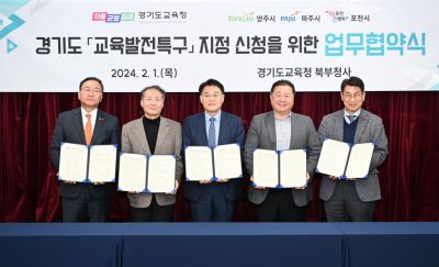 파주시는 2024.2.1일 경기도교육청 북부청사에서 경기도교육청과 2024 교육발전특구 시범사업 지정 신청을 위한 업무협약을 체결했다.