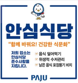 파주시는 외식에 대한 소비자의 신뢰도를 높이고 외식산업의 경쟁력을 강화하고자 2월부터 안심식당 참여업소를 추가로 모집할 계획이다.