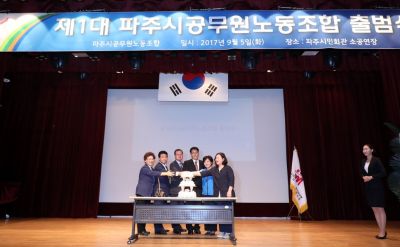 노조는 2017. 9.5일 파주시민회관 소공연장에서 출범식을 가졌다. 노조 조합원 은 가입대상 1,300여명 가운데 760명이 노조에 가입하고 6급 팀장 이상 160명도 후원회원으로 가입했다.