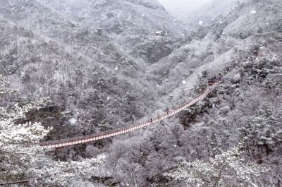 평상시 감악산 등산객들이 많이 이용하는 출렁다리 부근은 빨강색 현수교 출렁다리와 법륜사와 어우러지는 겨울철 설경이 장관이다. 출렁다리를 지나 정상으로 가는 길에는 얼음으로 덮인 높이 20m 운계폭포를 볼 수 있다.