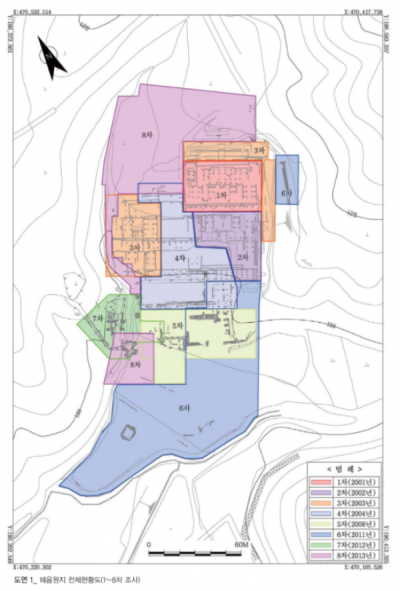 최초 발굴조사에 이어 2002년, 2003년,2004년까지 발굴하고 국가사적 제464호 지정되었고 2012년까지 10회 걸친 발굴조사가 진행됐다.